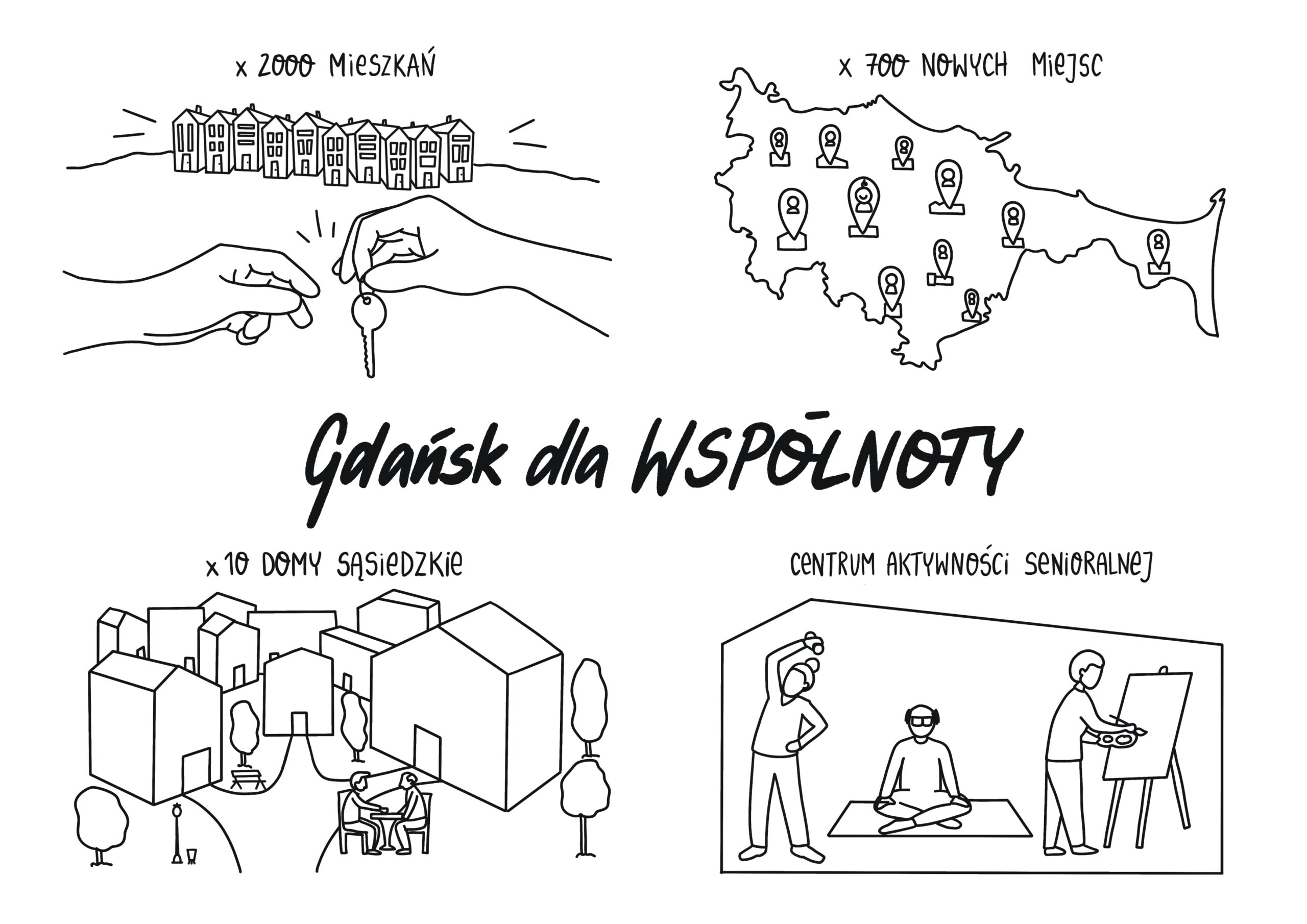 Pozyskamy 2 tysiące mieszkań na wynajem dla mieszkańców. Stworzymy 10 nowych domów sąsiedzkich, lokalnych centrów kulturalnych i społecznych. Powstanie 700 nowych miejsc w żłobkach, liceum, szkoły podstawowe i Centrum Aktywności Senioralnej.